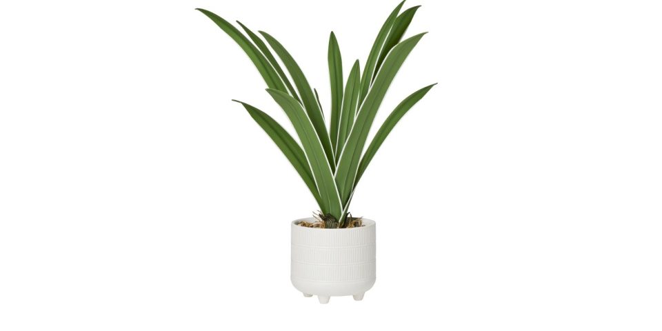 Riviera Ceramic Potted Faux 17h” Cymbidium Leaf Plant